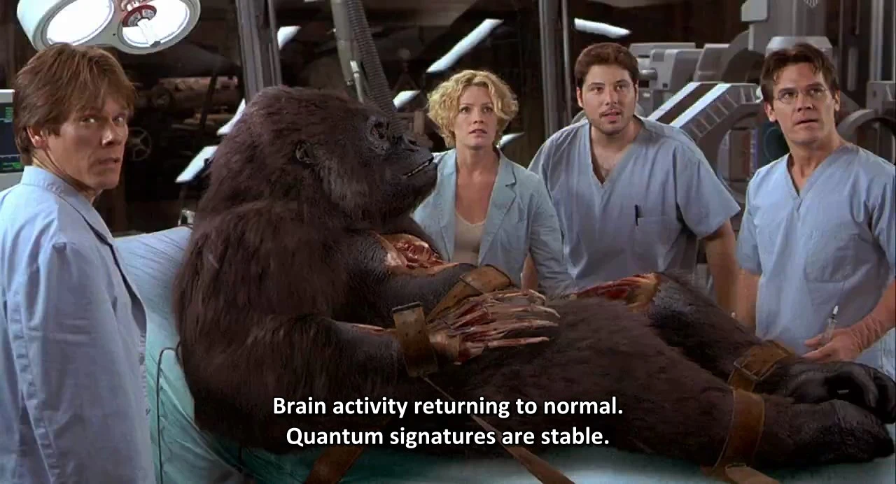 Actors: Kevin Bacon as Sebastian Caine / Hollow Man, Elisabeth Shue as Linda McKay, Josh Brolin as Matthew Kensington, Kim Dickens as Sarah Kennedy, Greg Grunberg as Carter Abbey, Joey Slotnick as Frank Chase, Mary Randle as Janice Walton, William Devane as Dr. Howard Kramer, Rhona Mitra as Sebastian's Neighbor, Pablo Espinosa as Ed, Warehouse Guard, Jeffrey Scaperrotta as Boy in Car, Tom Woodruff Jr. as Isabelle the Gorilla, Margot Rose as Mrs. Kramer, Jimmie F. Skaggs as Wino, Sarah Bowles as Girl in Car, Kelli Scott as Mom, J. Patrick McCormack as General Caster, Darius A. Sultan as Gate Guard, David Vogt as Helicopter Pilot, Gary A. Hecker as Gorilla Vocals, Emin Hüseynov as Baby